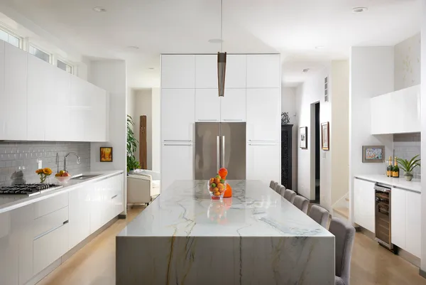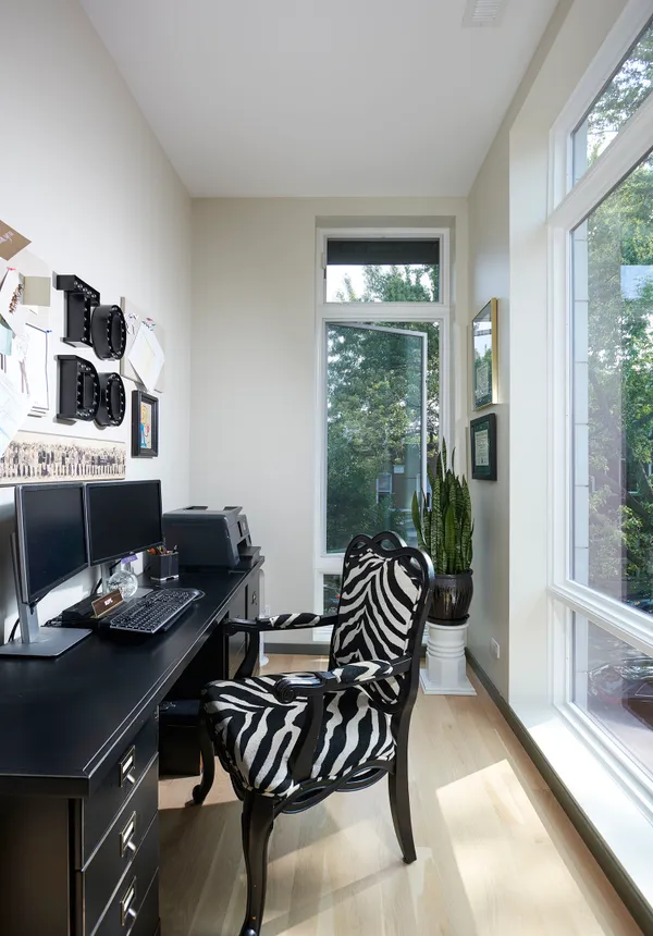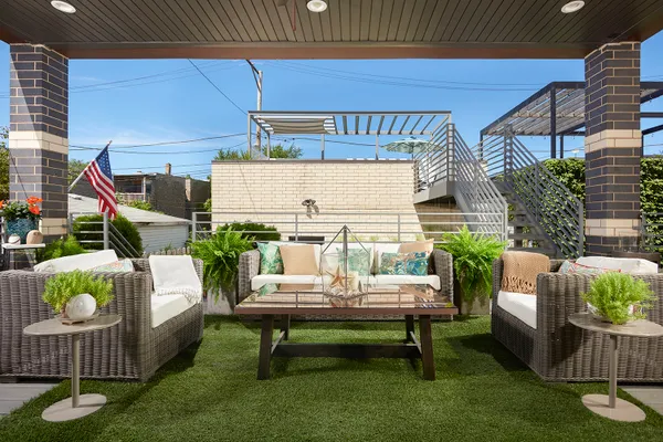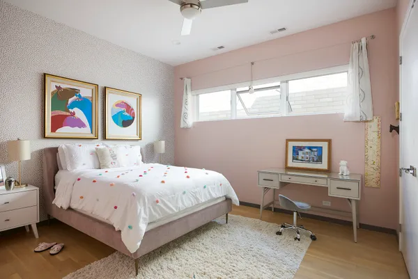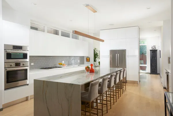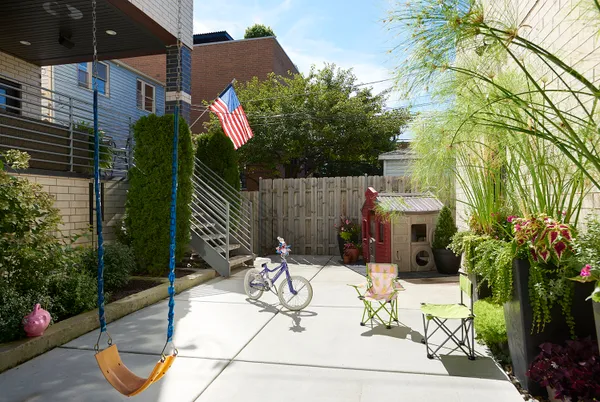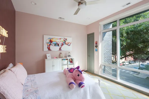 Spectacular home on a 30′ wide lot with amazing finishes throughout. Exclusive all-masonry 4,584 sq ft 3-story residence with floor-to-ceiling windows flooded with sunlight. Features 5 bedrooms plus loft/office and 3.5 beautiful spa-like baths with heated floors. The main level is an entertainer’s paradise with a massive Italian kitchen, waterfall island/table seating, pantry, storage, and wine bar. Huge sun-filled dining room and living room that opens to a large covered Trex deck with lighting and ceiling fan, plus a catwalk to the Trex garage rooftop terrace with privacy fence, pergola, and sun-sail shade. Main floor also includes a large mud room with rear access to the deck and patio. Upper level offers 3 bedrooms, laundry room, and a bright loft/office. The primary suite features custom lighting, a 23′ custom California Closet system, and a luxury bath with soaking tub, rain shower, and Italian cabinetry. Sunny lower level includes a massive family room, wine bar with Italian cabinetry, 2 large bedrooms with walk-in closets, spa-like bath, 2nd laundry room, storage room, and radiant heated floors. Roof landing has storage cabinetry and plumbing rough-ins for future sink, fridge, and a potential 4th outdoor space. Green technology throughout: high-efficiency 2-stage variable HVAC with humidifiers and UV air filtration, plus 22 solar panels with transferable warranty and full production monitoring. LEED Silver Net-Zero home. Professionally designed and highly organized. Prime West Town/Ukrainian Village location near Smith Park, West Loop, and Level 1+ Mitchell School.